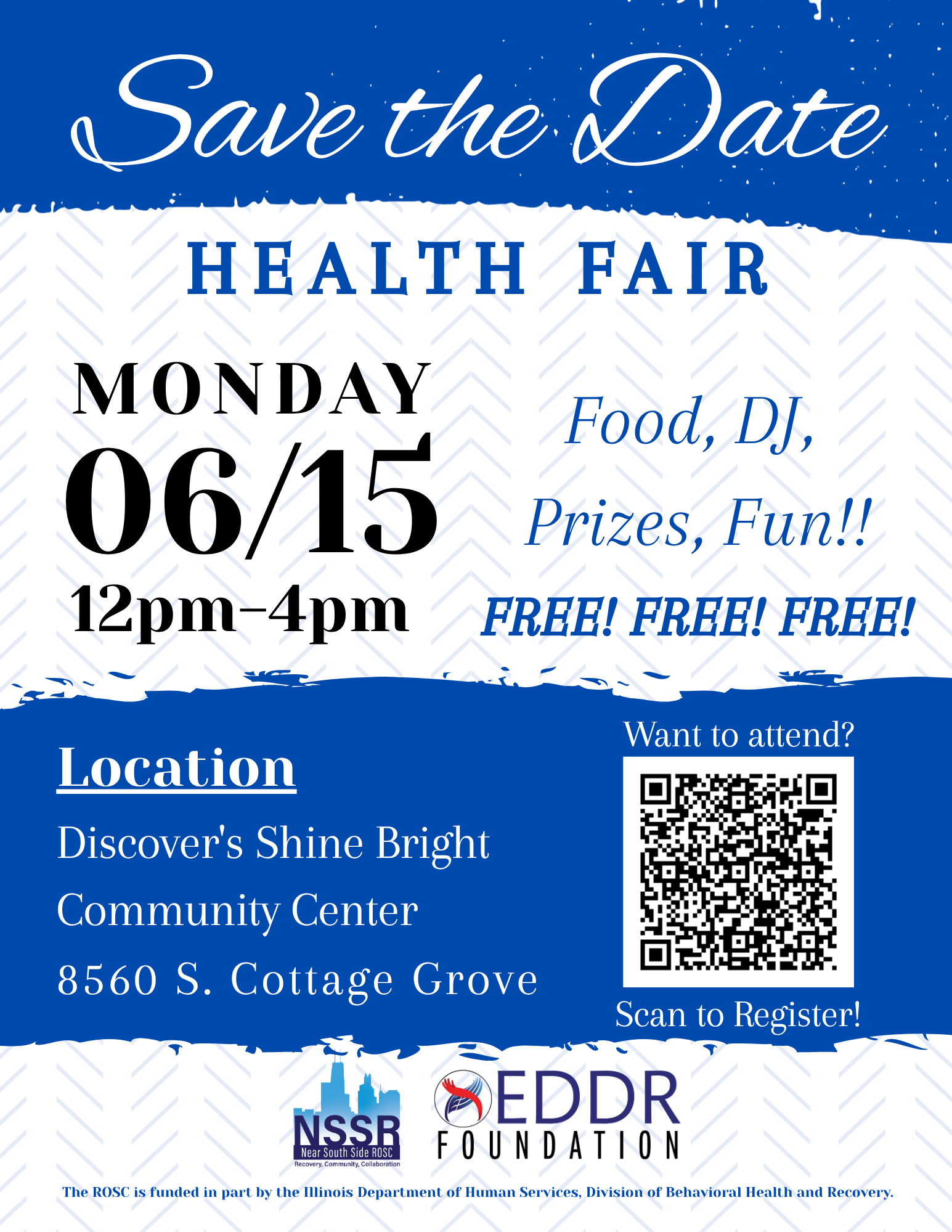 NEW LOCATION: Shine Bright Community Center, 8560 S. Cottage Grove Avenue, Chicago, IL 60619 Date: Monday, June 15, 2026 Time: 12:00pm - 4:00pm Phone: 312-852-7331 All attendees will have access to vendors, workshops, table giveaways, and receive raffle tickets for $$ gift card drawings throughout the event. SNACKS AND BEVERAGES WILL BE AVAILABLE FOR ATTENDEES THROUGHOUT THE EVENT THIS IS A FREE EVENT